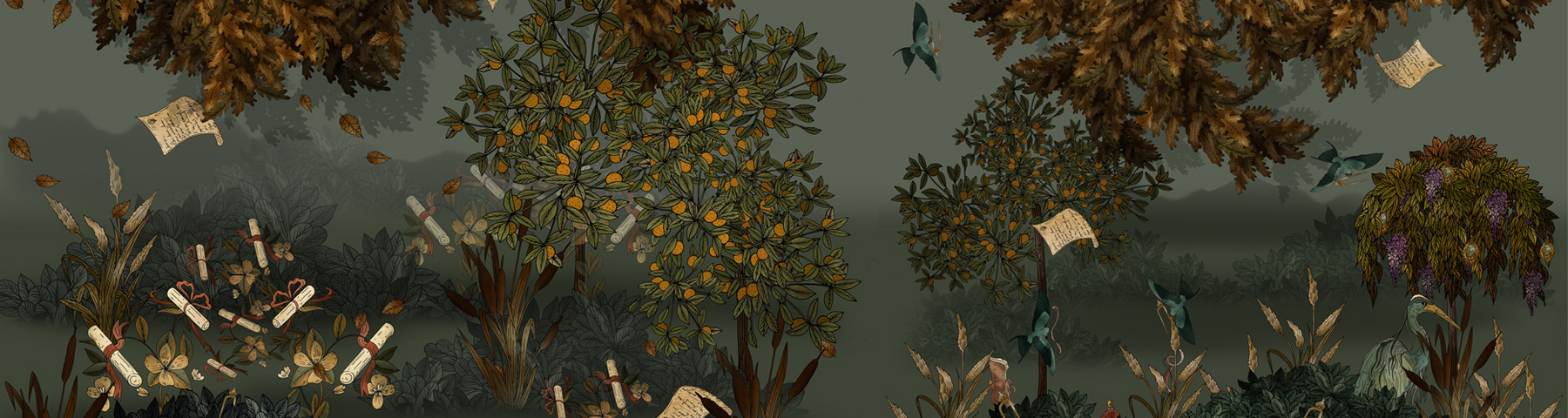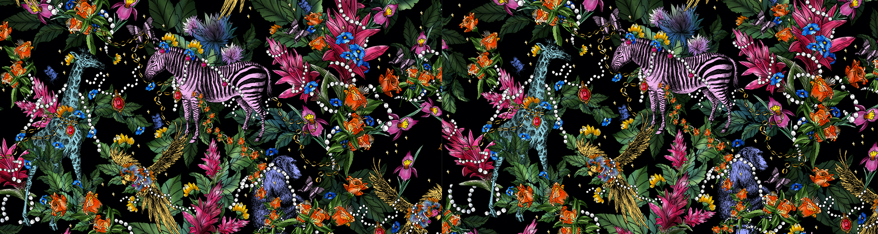 Illustratrice, scénographe, Aurore Danielou trace ses lignes sinueuses avec une précision maniaque, à toutes les échelles et sur les supports les plus variés. Ses arabesques aux couleurs éclatantes, ses motifs végétaux et ses animaux merveilleux résonnent comme une délicieuse invitation au voyage, le temps d’une rêverie féérique… Des restaurants, des hôtels et des boutiques, des cosmétiques de luxe, des spiritueux, des éditeurs de wallpapers ont fait appel à son univers baroque aux accents fantastiques, furieusement moderne.