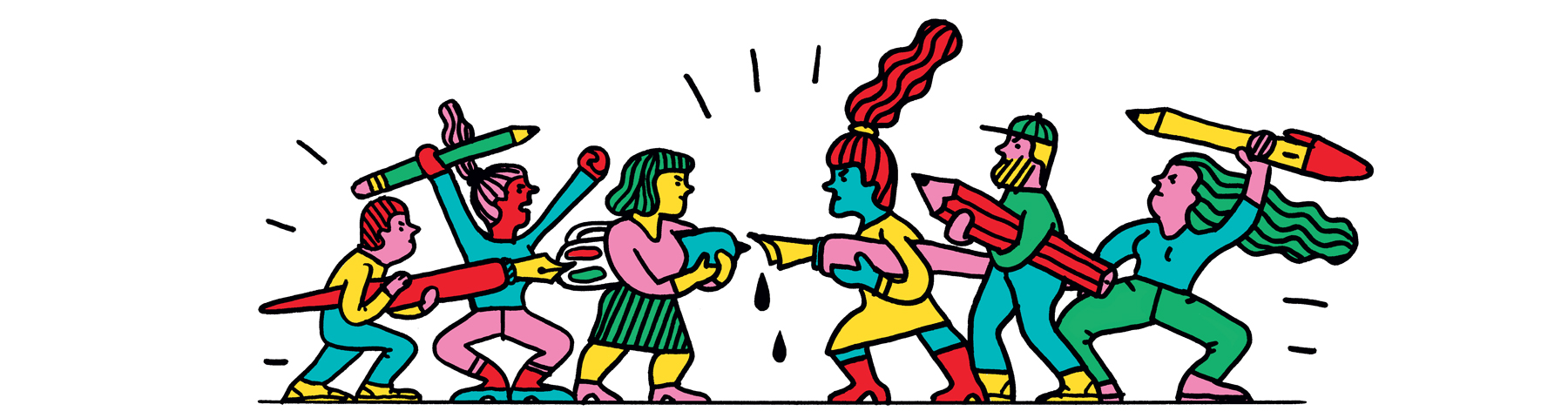Pas étonnant que des journaux comme Télérama, Paris Mômes ou La Revue Dessinée la sollicitent régulièrement pour illustrer des sujets de société ou des concepts abstraits… Néanmoins bien ancrée dans le réel, elle sait aussi illustrer des tutoriels pour Danone, des documents corporate ou RH, des affiches culturelles…