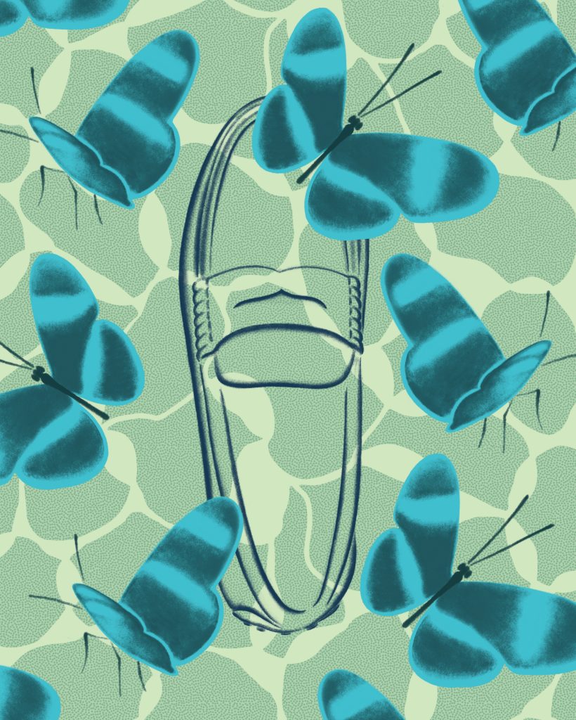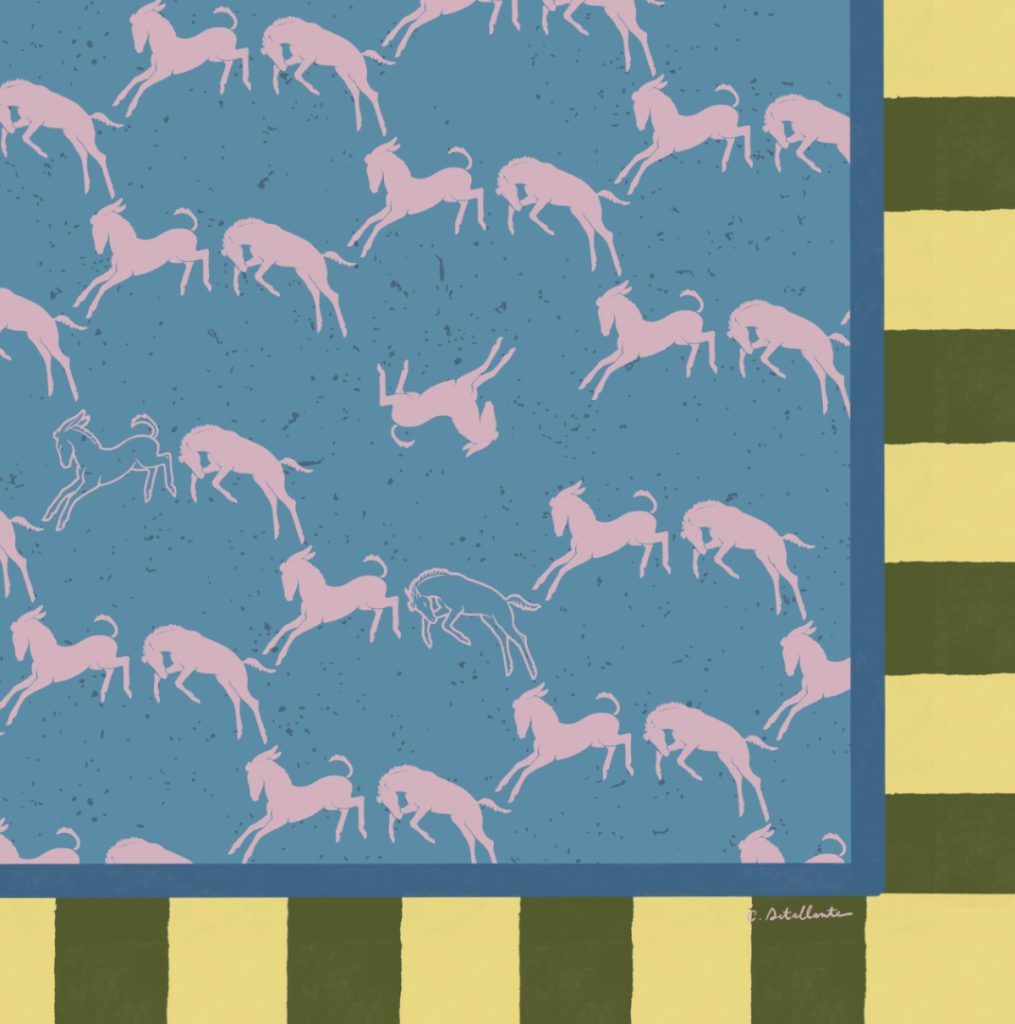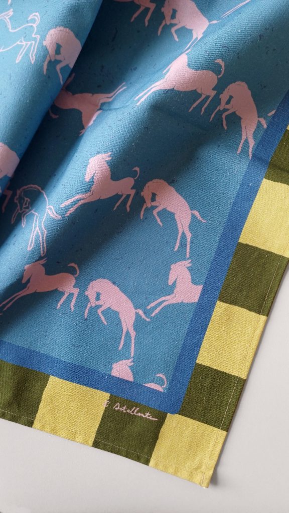 Maintenant, imaginez cet univers, cette ligne, chez Bottega Veneta, au sol et au mur, dans les vitrines d’Hermès, pour une expérience immersive — ou encore chez Tod’s. Une ligne qui traverse les formats, éclot sur du textile, de la céramique, de la papeterie, des objets, toujours en mouvement.