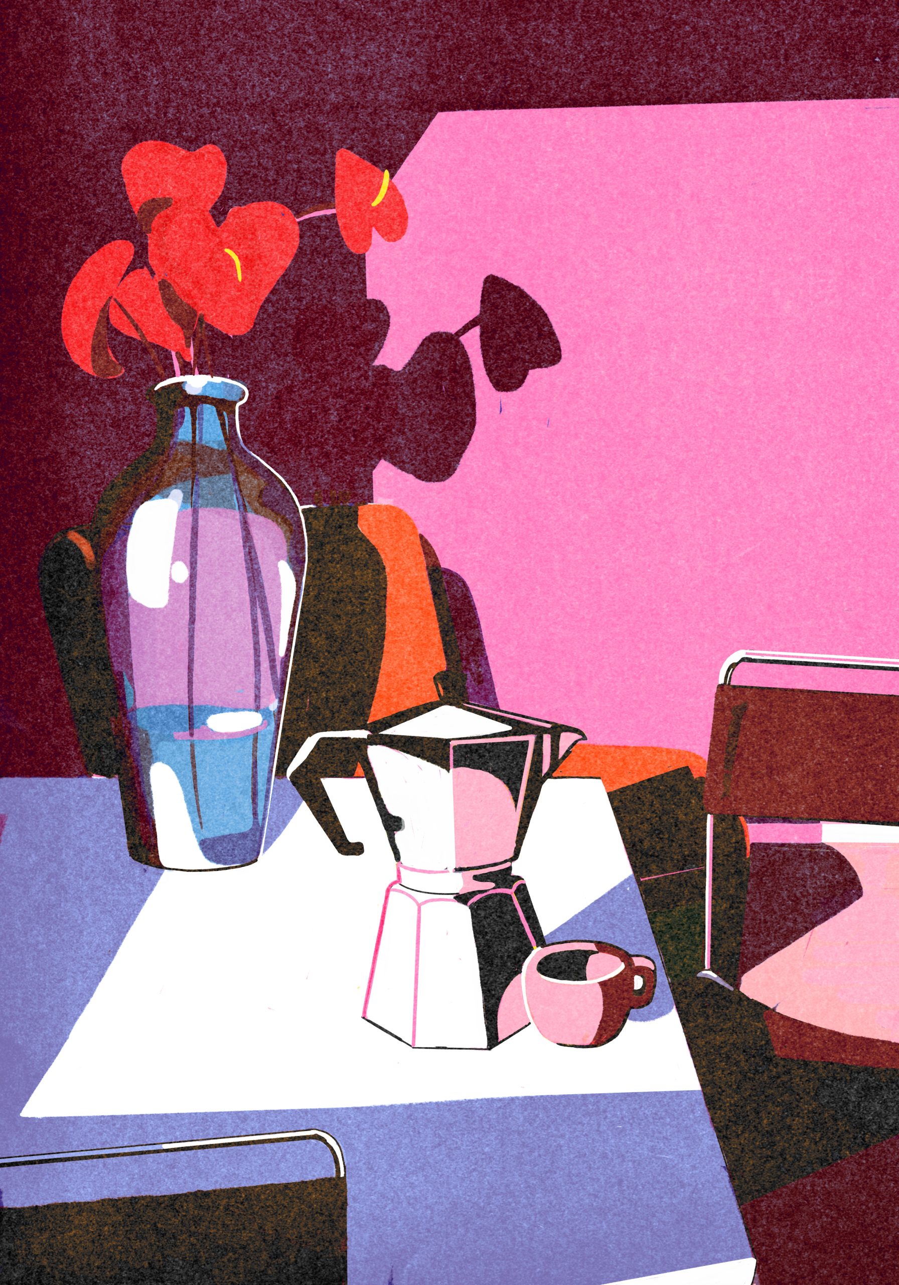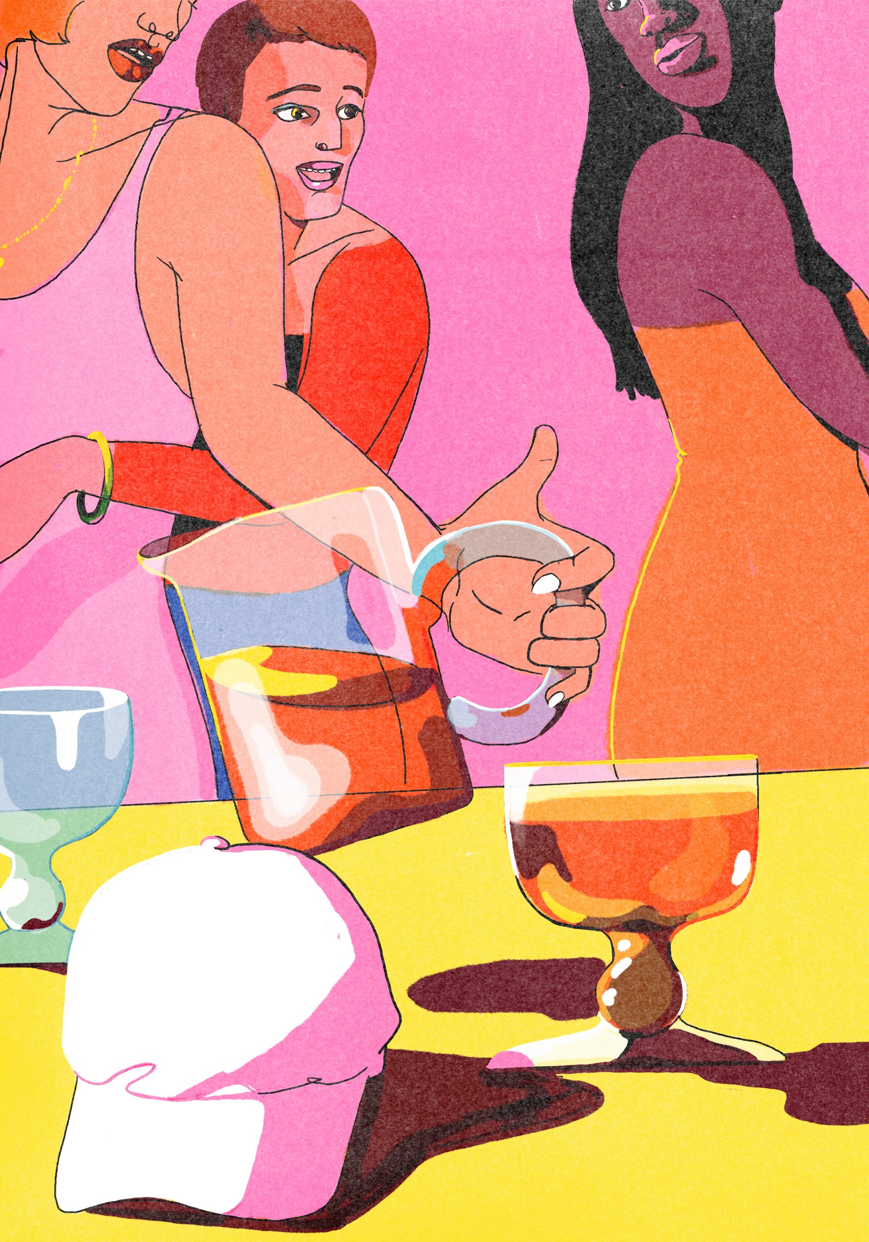 Élodie Lascar a grandi en Israël avant de s’installer à Paris. En 2014, elle est diplômée des Arts Décoratifs de Strasbourg, et part vivre à Marseille, où elle réside et travaille aujourd’hui. Vous vous rendrez aisément compte que la Méditerranée et les Méditerranéennes sont sa première source d’inspiration. D’autre sujets qui la passionnent ? Le collectif, la cuisine, Dalida, les femmes qui fument, les femmes en maillot de bain, les femmes !