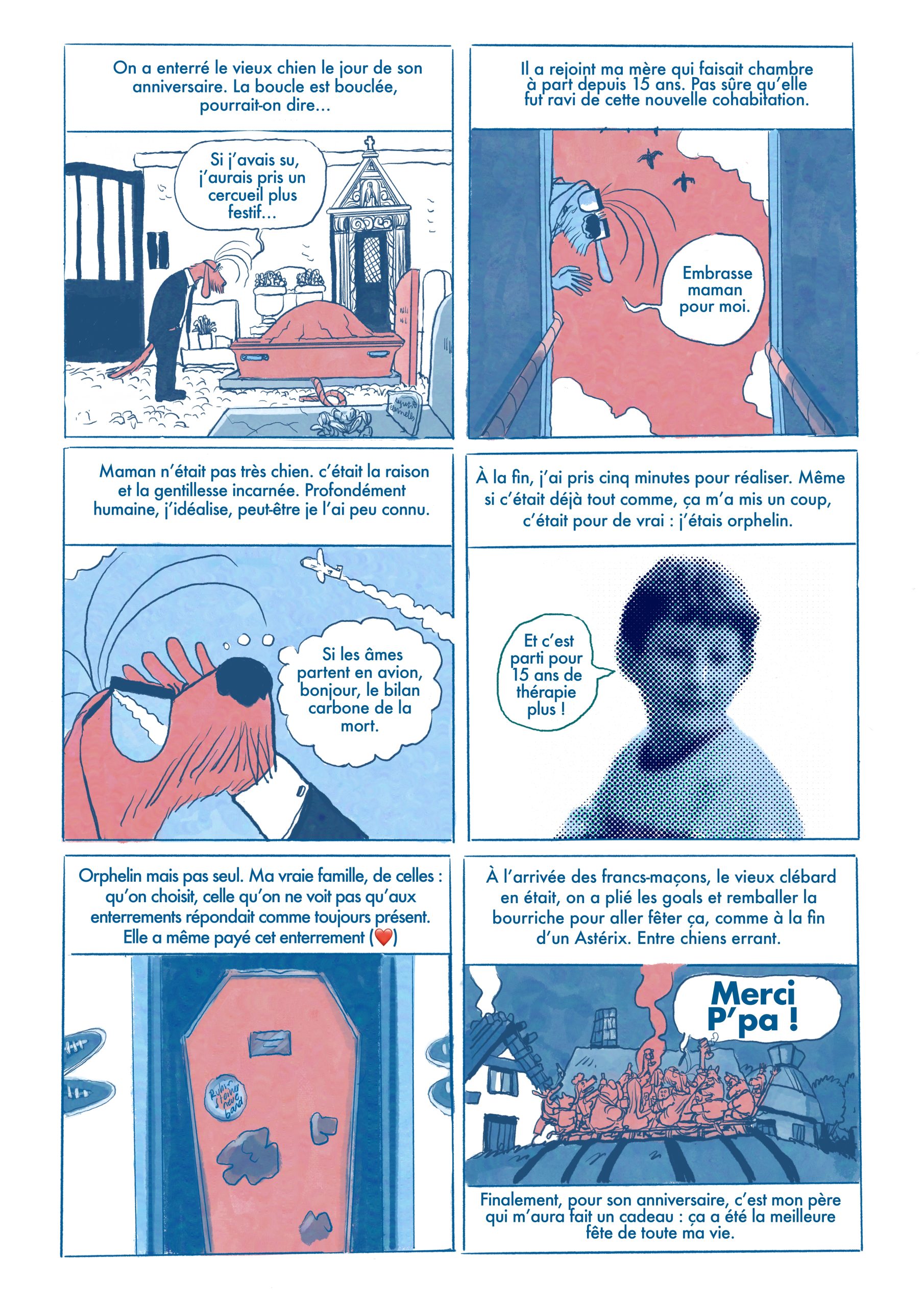 Entre humour noir, lucidité implacable et émotions à vif, il signe une œuvre aussi drôle que déchirante, où chaque page sonne juste. Sans doute le livre le plus fort et le plus abouti de Terreur Graphique.