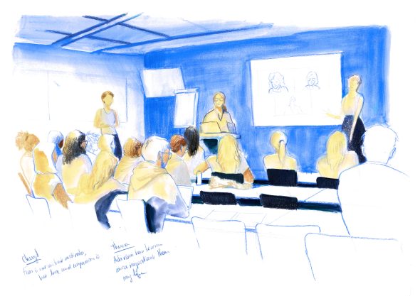 Pour retranscrire l’ambiance, Marie Nortier, observatrice sensible, se plie à l’exercice de la restitution pour un work shop.