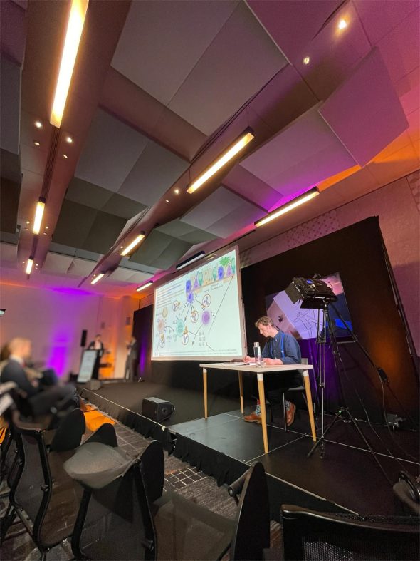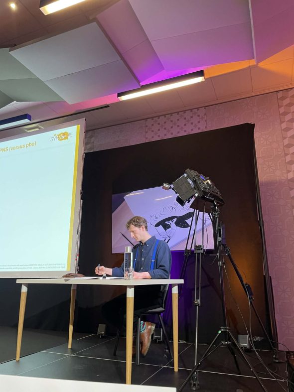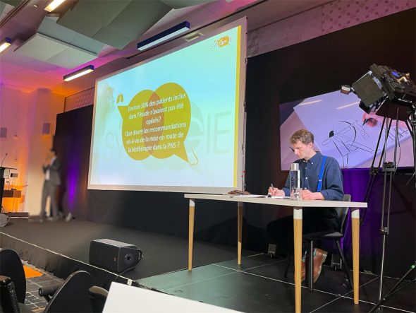 A la demande de l’agence IPG Health, Matthieu Méron a accompagné, en dessins, une conférence lors d’un colloque médical.