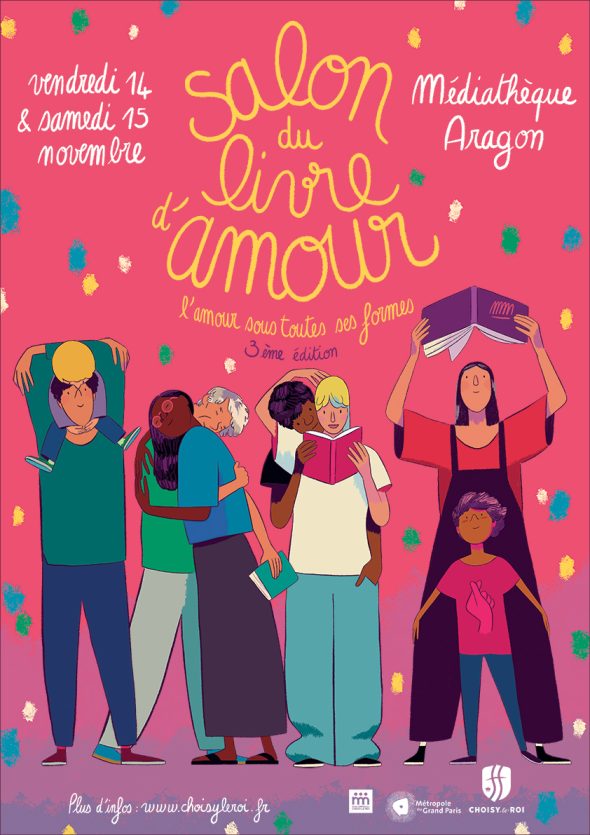 Pour la troisième année, la ville de Choisy-le-Roi organise son Salon du livre d’amour à la médiathèque Aragon, les 14 et 15 novembre 2025. Au programme : rencontres, dédicaces, tables rondes, spectacles. Matthieu Méron signe les visuels de l’affiche et du kit de communication print et digitale de cette 3e édition.