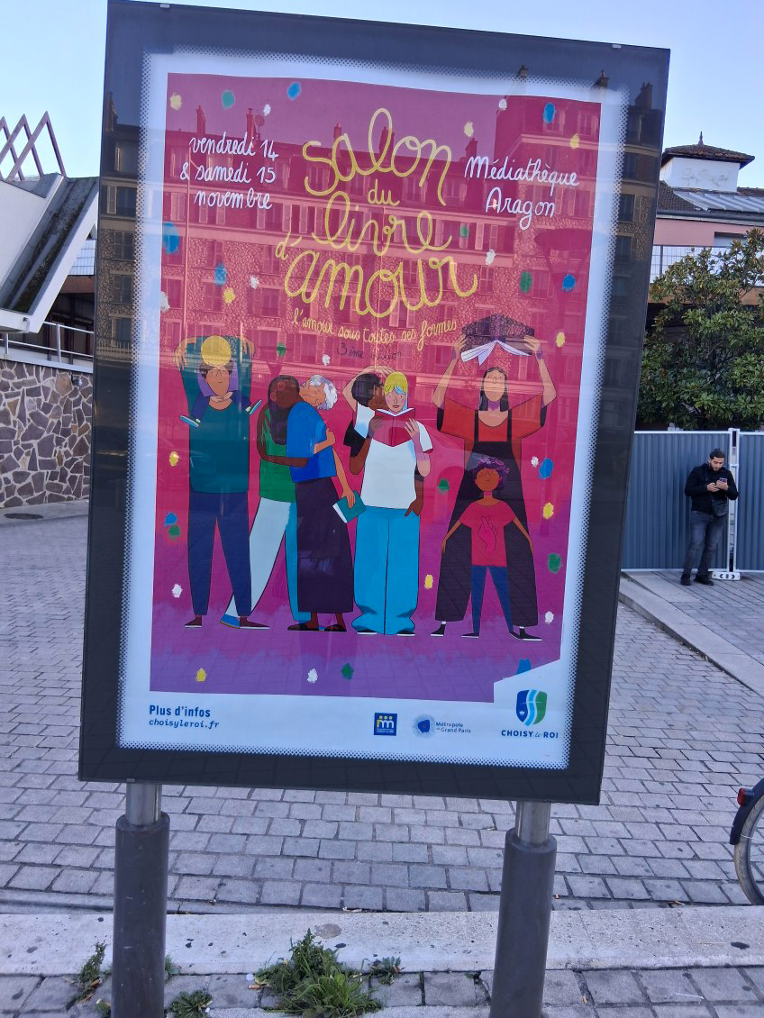 Pour la troisième année, la ville de Choisy-le-Roi organise son Salon du livre d’amour à la médiathèque Aragon, les 14 et 15 novembre 2025. Au programme : rencontres, dédicaces, tables rondes, spectacles. Matthieu Méron signe les visuels de l’affiche et du kit de communication print et digitale de cette 3e édition.